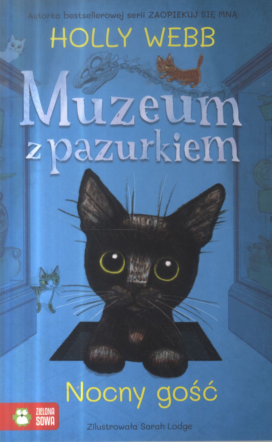 Muzeum z Pazurkiem to nowa seria Holly Webb - autorki wzruszających opowieści Zaopiekuj się mną! W niektórych muzeach mieszkają koty, które pełnia bardzo ważną rolę. Chronią eksponaty przed gryzoniami. W Muzeum z Pazurkiem mieszkają Sonia, Tasza, Bianka i Iwan. Jednak pewnej burzowej nocy na schodach muzeum zjawia się mały czarny kotek - Piotruś. Tasza, pręgowana kotka, z radością wita nocnego gościa i oprowadza po wszystkich zakamarkach budynku. Pozostałe koty muzealne nie są tak przyjazne i z niechęcią odnoszą się do przybysza. Tasza chce im udowodnić, że Piotruś może zostać jednym z nich. Zabiera nowego na polowanie na szczury. Gdy koty docierają do Galerii Dinozaurów ze szkieletem słynnego T-Rexa, wyprawa przybiera nieoczekiwany obrót…